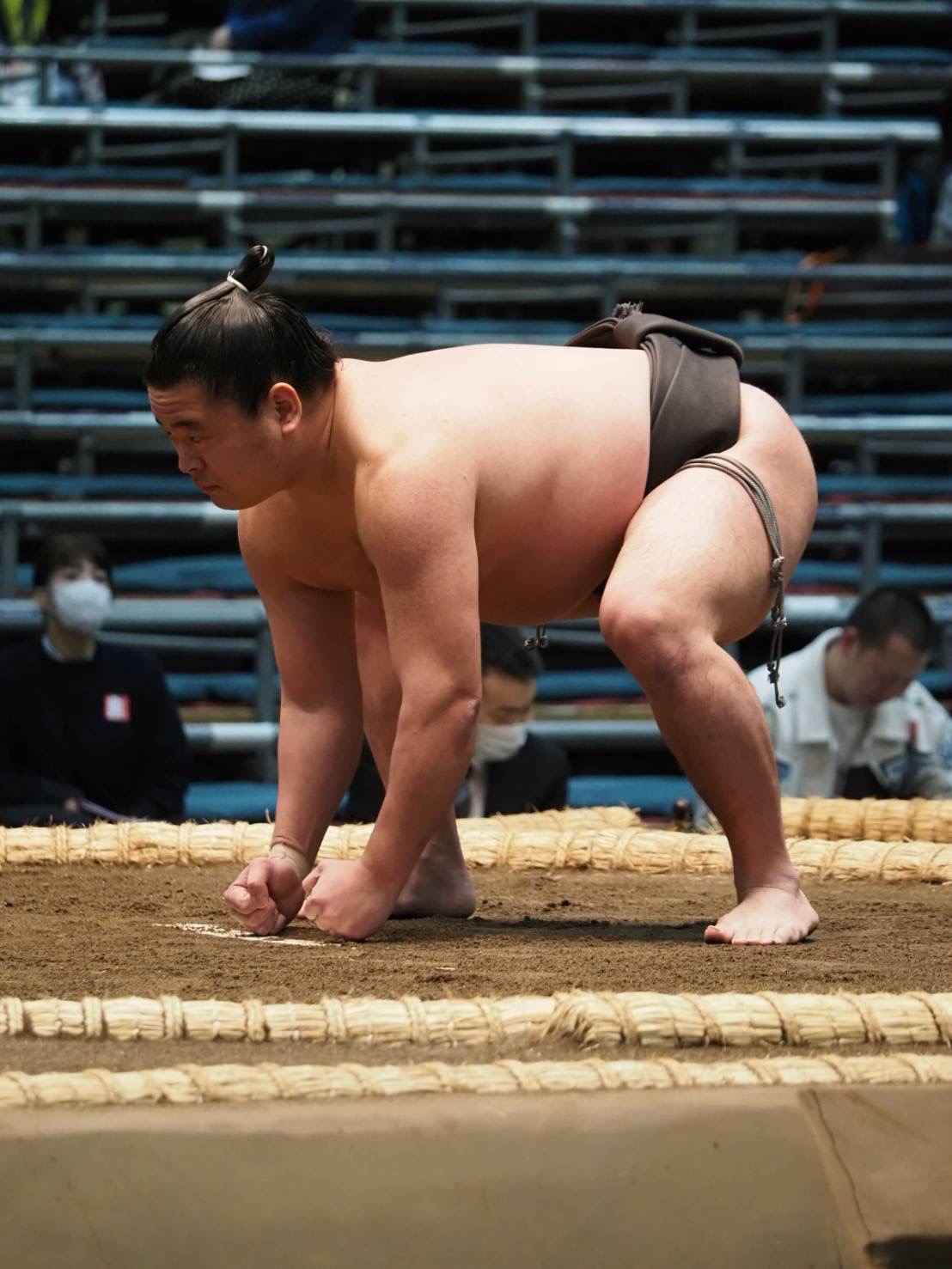 藍です。 今日で三月場所が始まって七日目です。 自分は今三番相撲を取って三敗です。 思うように相撲が取れていませんが、ここからも諦めずに頑張りたいと思います。